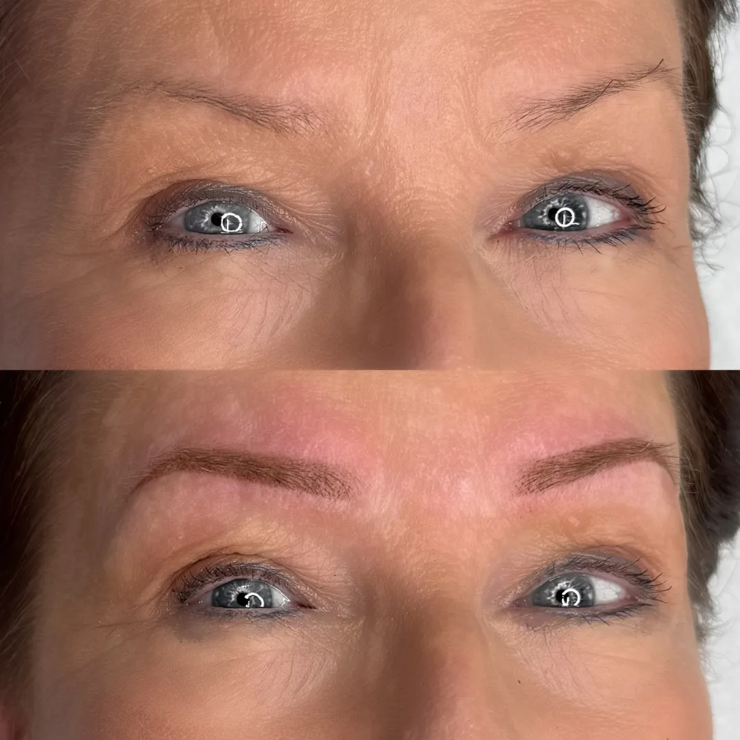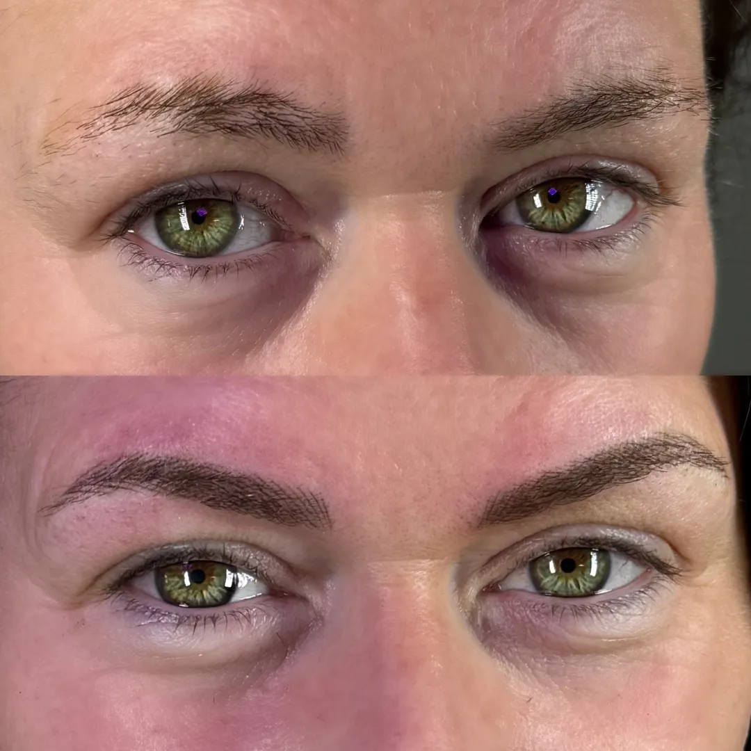 Semi-permanent brows are a cosmetic tattoo that enhances your natural eyebrows using gentle pigment implantation - giving you beautifully defined, soft, fuller-looking brows that stay flawless from morning to night.